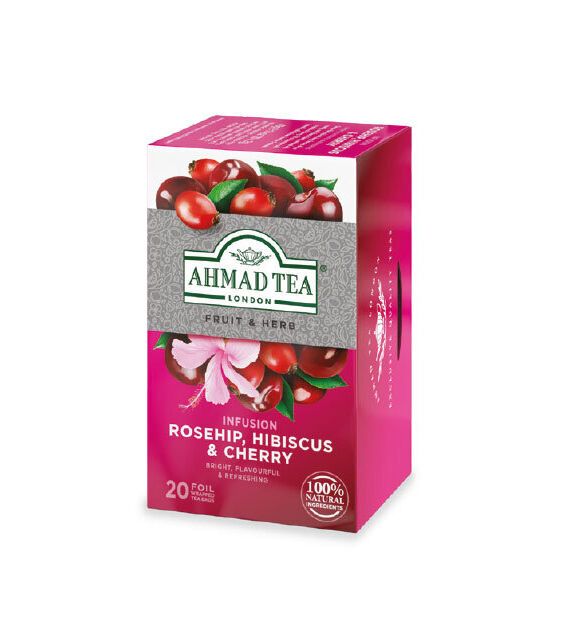 Ahmad Tea Rosehip, Hibiscus & Cherry, 20 Foil-Wrapped Teabags